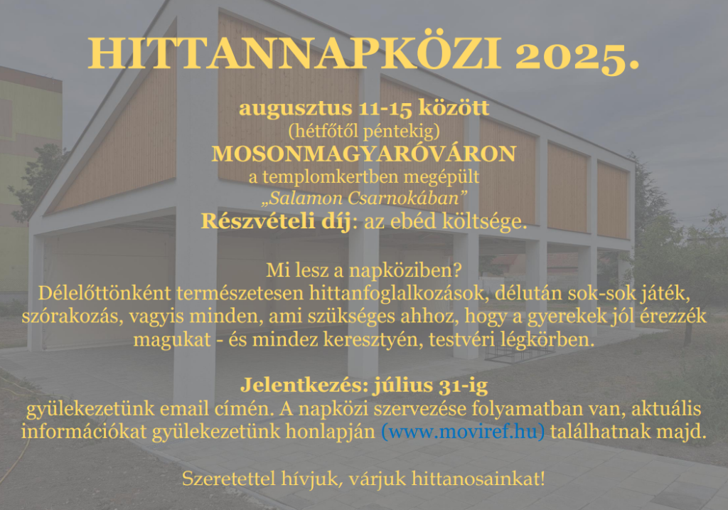 Köszöntjük a Mosonmagyaróvári Református Egyházközség honlapján!